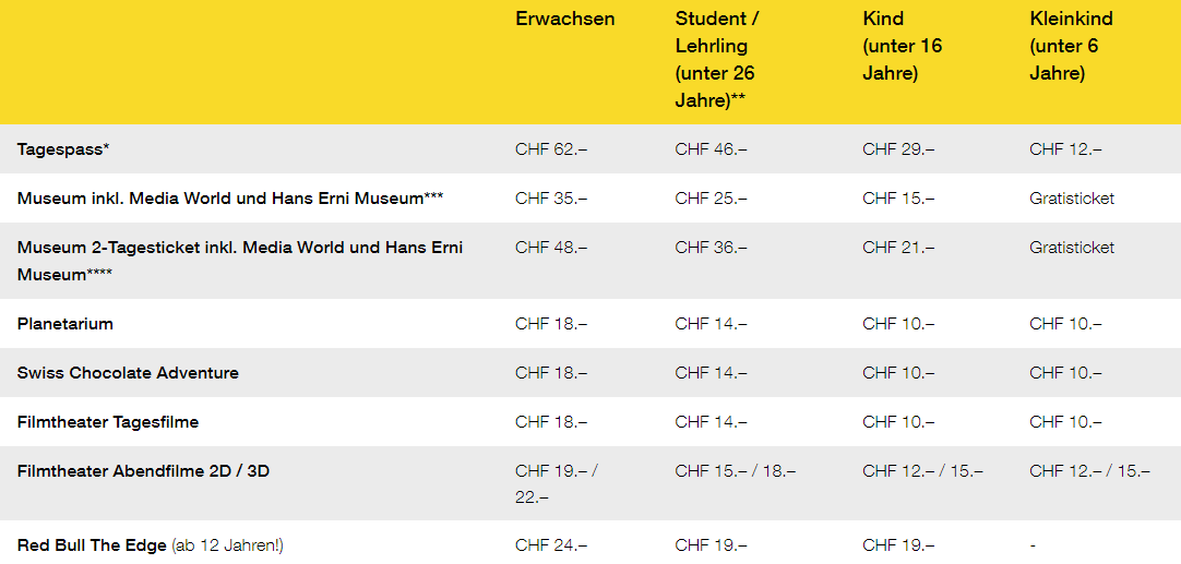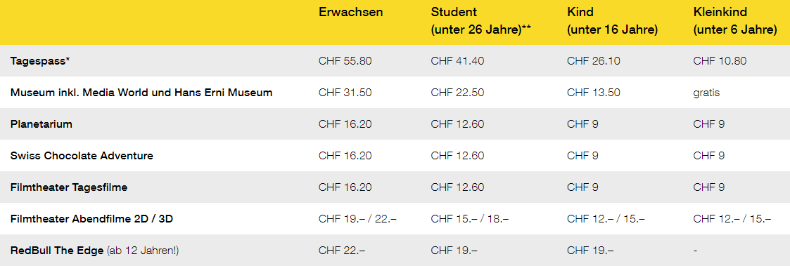 Betriebsstatus der Attraktionen im Verkehrshaus